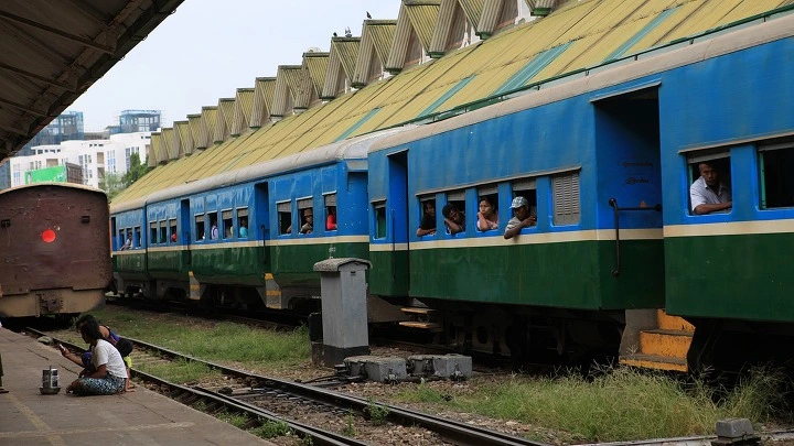 양곤역에 있는 기차이다. 달린 다기보다는 굴러간다는 표현이 적당하다. 기차는 너무 낡았고, 철길은 상태가 매우 나쁘다. 40 km 이상 달리기는 힘들어 보인다. 그래도 장거리를 이동하려면 또 기차만 한 수단도 없다. 순환선 역 주변으로 시장이 형성되어 있고, 철길 주변은 쓰레기가 넘쳤다. 지금은 어떤가 모르지만, 별로 추천하고 싶지는 않다.