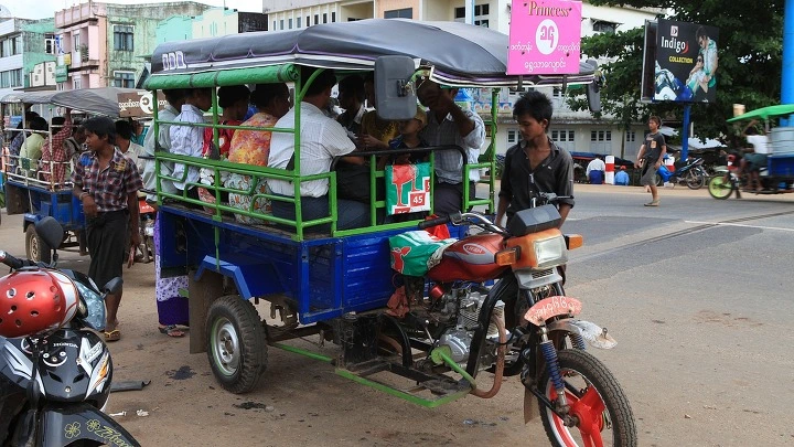 이렇게 오토바이를 개조한 버스가 가장 대중적인 교통수단이기도 하다. 태국이나 여타 동남아 국가를 방문한 관광객이면 익숙할 것이다. 승차감이나 에어컨 같은 것은 기대하지 않는 것이 좋다.