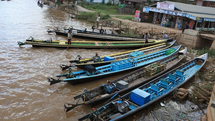 인레 호수를 끼고 있는 도시인 낭쉐의 운하에 있는 보트들이다. 이 보트들이 인레 호수 지역의 사람과 화물을 담당하고 있는 물류의 중심이다. 하루 빌리는 데는 우리나라 돈 2만 원 정도 한다. 디젤엔진 소리가 무척이나 시끄럽고, 속도는 꽤 빠른 편이다.