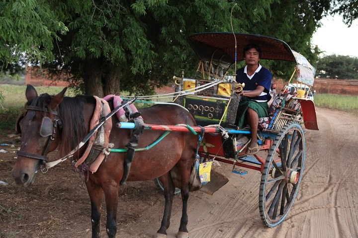 위 마차가 내가 바간에서 하루 반동안 이용한 마차이다. 하루 2만 원 정도면 빌릴 수 있다. 특별한 요청이 없으면 마부가 알아서 이동한다. 영어를 거의 못하니 가고 싶은 곳이 있으면 호텔에 미리 얘기를 해서 통역을 해놓는 게 좋다.