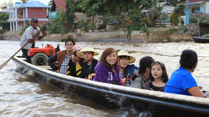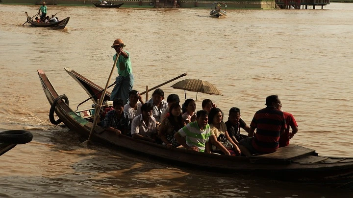 양곤강 하구에 위치한 항구도시인 딴린(Thanlyin)의 Kyaikhkauk Pagoda로 가는 관광객(순례객)들을 실어나르는 보트이다. 이 강에 위치한 불교사원은 강 중간에 있는 섬에 있는데, 비가 아무리 많이 내려도 강의 수위가 일정하다고 한다. 그래서 더 유명해졌다고 하는데, 이 배는 탈 때부터 신발을 벗어야 한다.