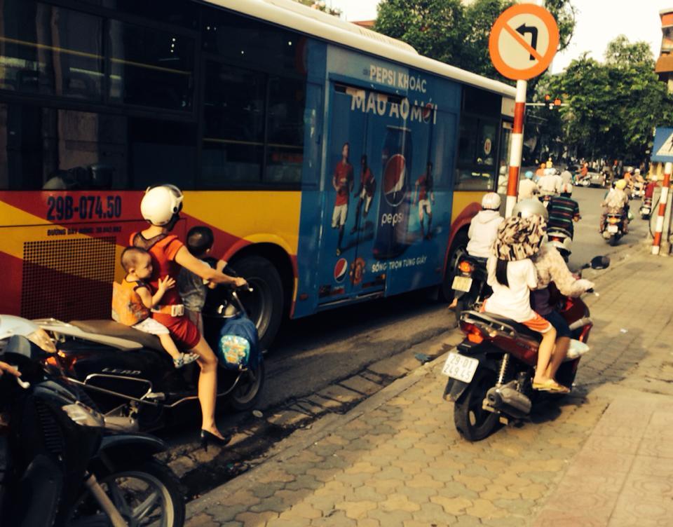 몽고의 애들이 말 위에서 태어난다면 이곳 하노이에서는 오토바이 위에서 태어난다. 아기들은 태어나면서부터 엄마에게 매달려 오토바이를 배운다. 오토바이 위에서 태어나 오토바위 위에서 삶을 살아간다. 3-4명의 가족이 옹기종기 오토바이 한 대에 타고 가는 것을 보면 정겹기까지 하다. 애기들이 엄마의 옆구리를 붙잡고 오토바이에 매달려 있는 것을 보면, 이들이 이렇게 오토바이 위에서 유연한 이유를 알 것도 같다. 여긴 정말 오토바이와 몸이 둘이 아니다. 혼연일체란 베트남에서는 사람과 오토바이의 결합상태를 표현하는 용어로 다시 정의 내려져야 한다는 생각이 들었다.