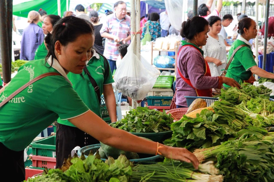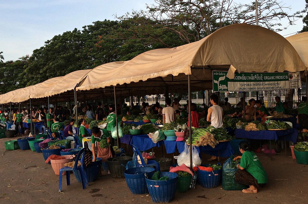 토요일 새벽부터 점심 전까지(대개 11시 정도) 비엔티안 주변에서 온 유기농산물을 판매하는 시장이 열린다. 새벽부터 산지에서 바로 올라온 농산물들은 신선하고 싱그럽다. 신선한 농산물을 찾는 부지런한 라오스 주부들은 이때를 놓치지 않는다. 문득 친하게 지내던 미얀마의 농업공무원의 이야기가 떠올랐다.