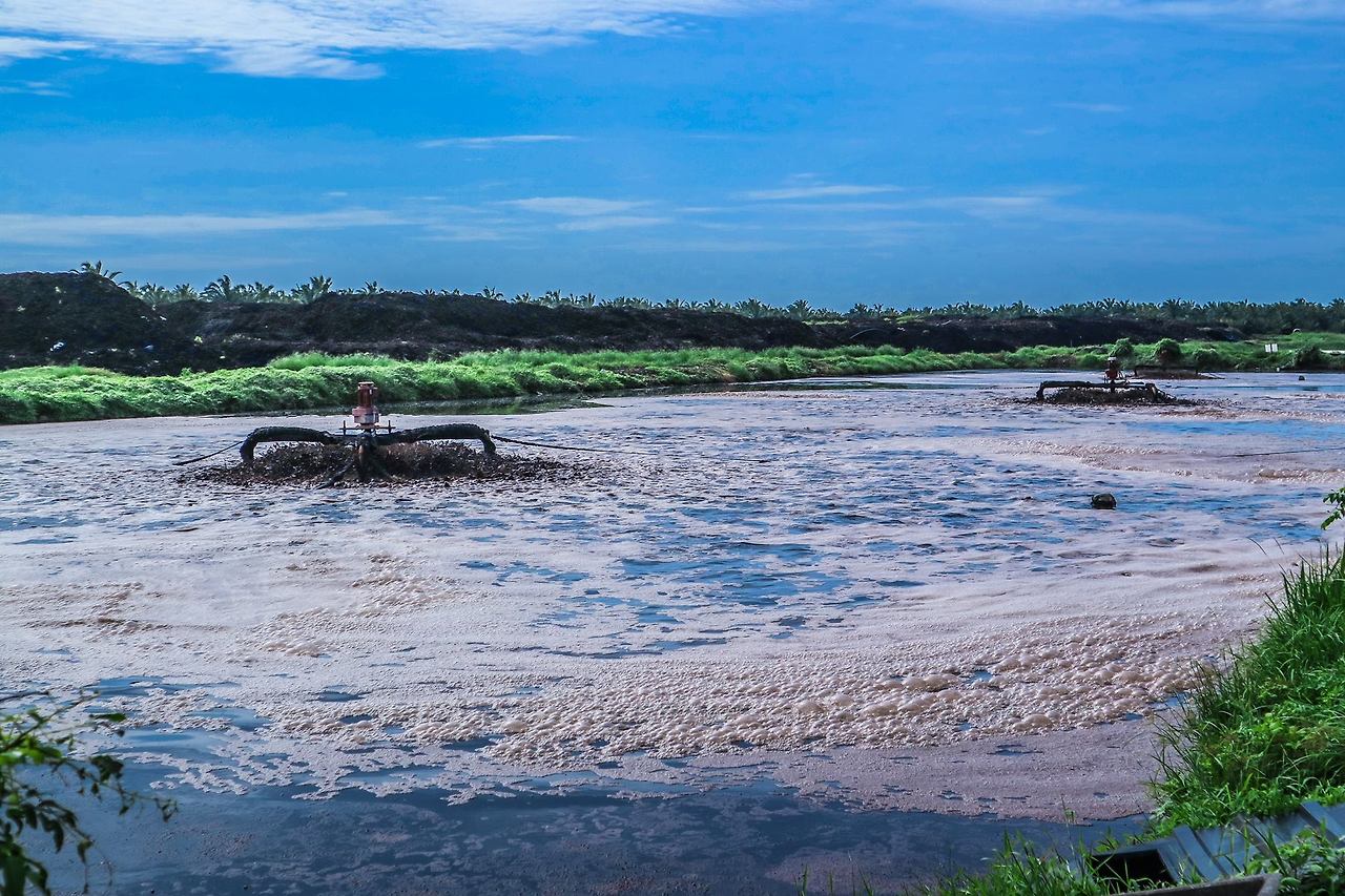 사진에 보이는 라군(Lagoon)은 팜밀에서 나오는 폐수를 처리하는 곳입니다. 폭기시설만 라군 당 2개가 있었습니다. 워낙 땅이 넓은 나라이니 환경오염을 그리 신경 쓰진 않겠지만, 한 때는 CDM 사업으로 이런 시설을 현대적인 메탄발효조로 바꾸는 사업들이 진행되기도 했습니다. 이렇게 폭기조만 설치해도 메탄의 발생향을 크게 줄일 수 있습니다.
