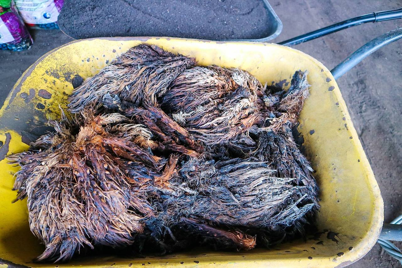 1톤의 팜 송이를 가공하면 약 0.22톤의 팜송이 폐기물(Empty Fruit Bunches, EFBs)이 나옵니다. 팜 폐기물로는 가장 많죠. EFBs는 건조 후 연료로 사용되기도 하지만 퇴비 원료로도 많이 사용됩니다.