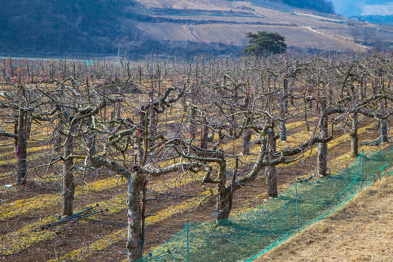 이 오래된 사과나무가 아직도 현역에서 활동하고 있는 이유는, 아마도 과수원 주인이 새로이 나무를 심기엔 너무 나이가 들었기 때문일 게다. 별로 수익이 날 것 같지 않은 과수원이지만 그래도 정성 들여 관리한 태가 역력하다. 도회지로 떠난 자식들을 뒷바라지한 사과나무가 노인의 마지막 벗이 되었다.
