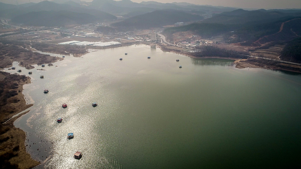겨울 동안 움츠렸던 붕어들이 깨어나자 낚시꾼들도 깨어났다. 늦게 당도한 드론꾼에게 물안개는 보이지 않고, 나의 미래처럼 희뿌연 하늘만 기다리고있었다. 눈이 시리도록 푸른 하늘은 기대할 수 없었다. 멋있는 사진을 찍지는 못하겠지만 최소한 오늘의 기록에 만족해야만 한다. 어느 날 그 사진들을 이어 붙이면 아련한 추억의 활동사진이 될 것이다. "사진은 시간을 미분하는 장치"이고, 미분된 것은 적분될 수도 있다.