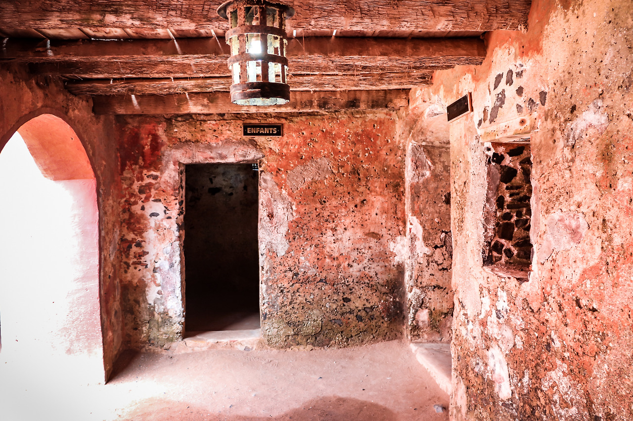 그렇지만 수많은 유럽인들은 다른 이유 때문에 이 섬을 찾습니다. 아프리카 대륙 깊숙한 곳에서 붙잡힌 흑인들이 그들이 살던 대륙을 떠나야만 했던 마지막 장소였기 때문입니다. 유럽으로 나가던 땅콩과 가죽 등 상품이 모이던 이 섬은 그 후 아프리카 인들을 노예로 팔아넘기는 장소도 겸하게 됩니다. 이 섬에 들어온 노예들은 "Slave house(노예의 집)"의 창도 없는 작은 감방에 머무르면서 쇠사슬에 묶인 체 다음 배가 오기를 기다렸겠죠. 그리고 바다로 나 있는 작은 문을 통해 바로 배로 옮겨졌습니다. 그렇게 떠난 그들은 다시는 고향땅을 밟을 수는 없었습니다.