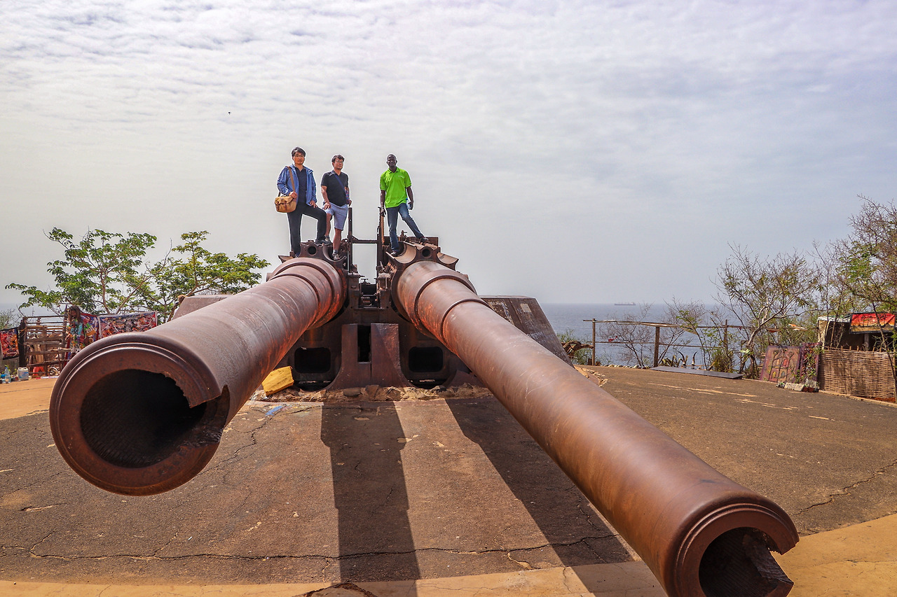 고레섬 정상에는 비교적 최근(?)에 세워진 포대도 있습니다. 군함에 쓰이는 함포를 떼다 설치해 놓았는데 어떻게 설치했을까, 불가사의하게 느껴질 만큼 거대합니다. 포신은 15미터에 달하고 군함의 포대처럼 회전이 가능합니다. 세네갈이 독립을 하자 프랑스는 바다를 향해 있던 이 거대한 대포를 다카르로 향하게 합니다. 그리고 포구를 박살 내어 더 이상 쓸 수 없게 만듭니다. 프랑스는 쓸만한 아무것도 이 나라에 남겨두지 않기로 했는지도 모르겠습니다.