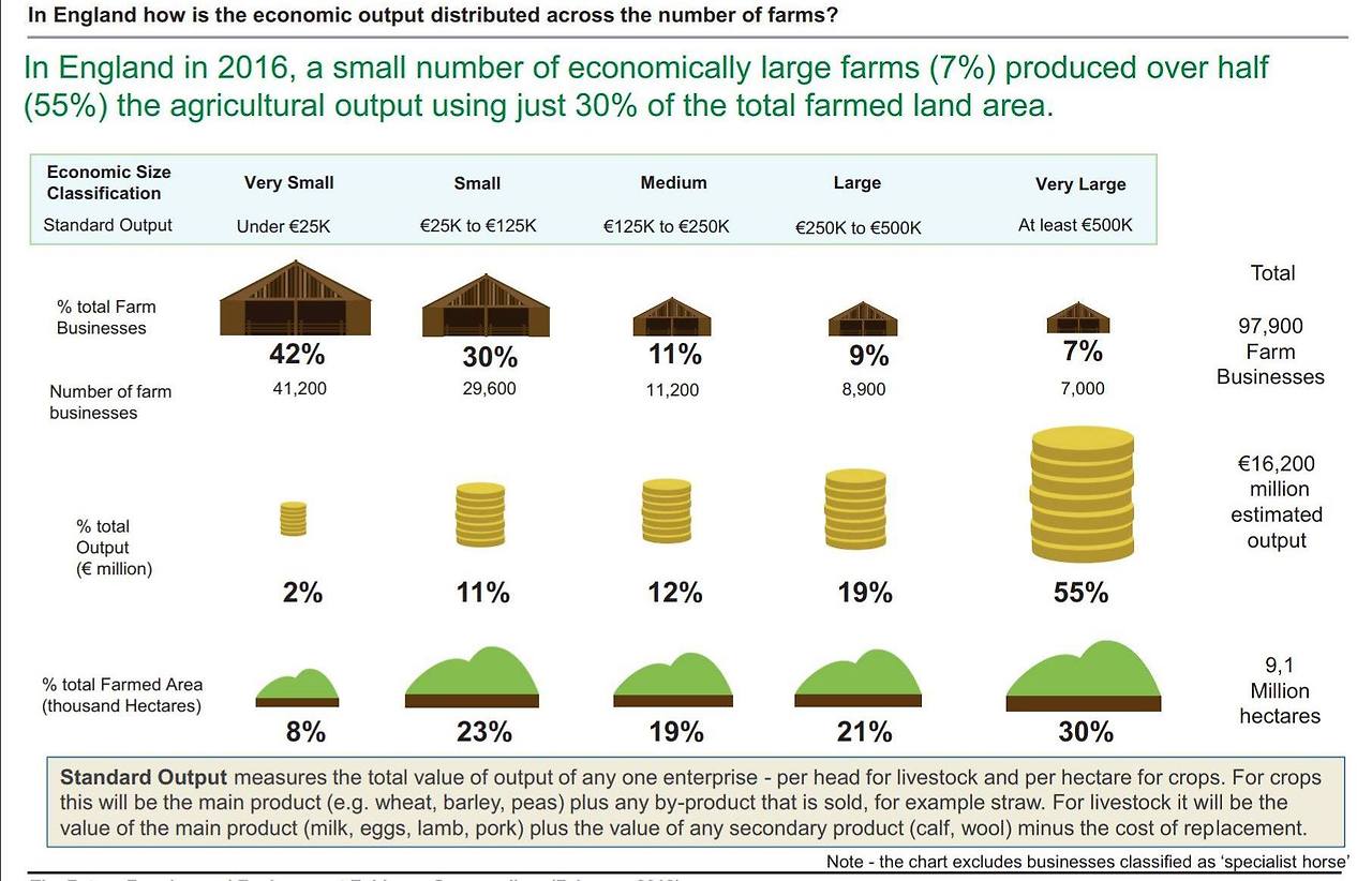 영국(잉글랜드)은 우리보다 농경지는 다섯 배 더 많지만 농가수는 열 배 더 작습니다. 42%의 소농은 단지 농업 GDP의 2%만 생산합니다. 7%의 대농이 농업 GDP의 55%를 생산합니다. 극단적인 대농과 소농의 조합입니다. 그렇다고 제가 본 영국 농촌이 황량해 보이진 않았습니다. 영국의 행정 단위인 shire는 우리나라 도보단 작고 군보단 확실히 더 큽니다. 영국도 예전부터 이렇진 않았을 겁니다.
