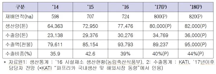 표 1. 파프리카 국내 생산 동향 및 향후 전망