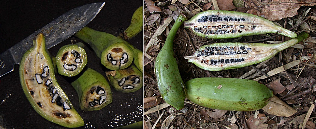 처음부터 바나나에 씨앗이 없었던 건 아니었습니다. 야생 바나나는 씨앗이 있습니다. 태국의 밀림이나 일본에도 야생 바나나가 남아 있다고 하죠. 그런 바나나에는 파파야처럼 씨가 엄청 많습니다. 우리가 먹는 ‘씨없는’ 바나나도 단면을 잘라보면 까만 씨앗의 흔적은 남아 있습니다.