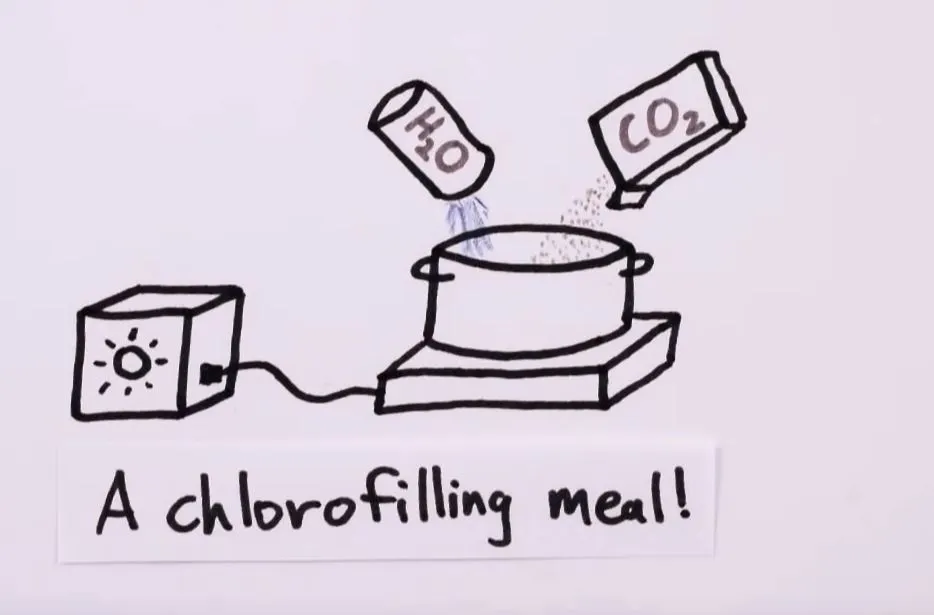 여러분들이 매일 같이 충전하는 스마트폰과 다르지 않습니다. 스마트폰 배터리를 충전하는 게 리튬(Li)의 전자 속에 전기를 잡아두는 물리적 과정이라면, 광합성은 물과 이산화탄소를 이용해 포도당을 만드는 화학적 과정이라고 할 수 있습니다. 식물 잎에서 이 역할을 하는 게 클로로필(chlorophyll)입니다. 대부분의 식물이 공통적으로 가지고 있는 기관이고, 지구에 동물이 살 수 있게 만드는 태양광 발전소입니다.