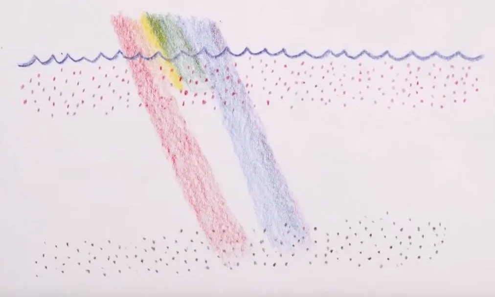 그런데 바닷속 더 깊은 물속에도 미생물이 살았을 텐데.... 그들은 녹색광을 이용할 수가 없습니다. 이미 윗층에 사는 고세균들이 모두 가져가버렸으니 말이죠. 새로운 블루오션을 찾아야 했습니다. 고세균은 쓰지 않고 흘려보내는 적색과 청색을 이용할 수 있으면 훨씬 더 생존에 유리했을 겁니다. 필요는 발명의 어머니입니다. 녹색을 띠는 클로로필이 돌연변이를 일으켜 등장했고 빠르게 세상을 점령해나갑니다. 과학자들은 이렇게 상상합니다.
