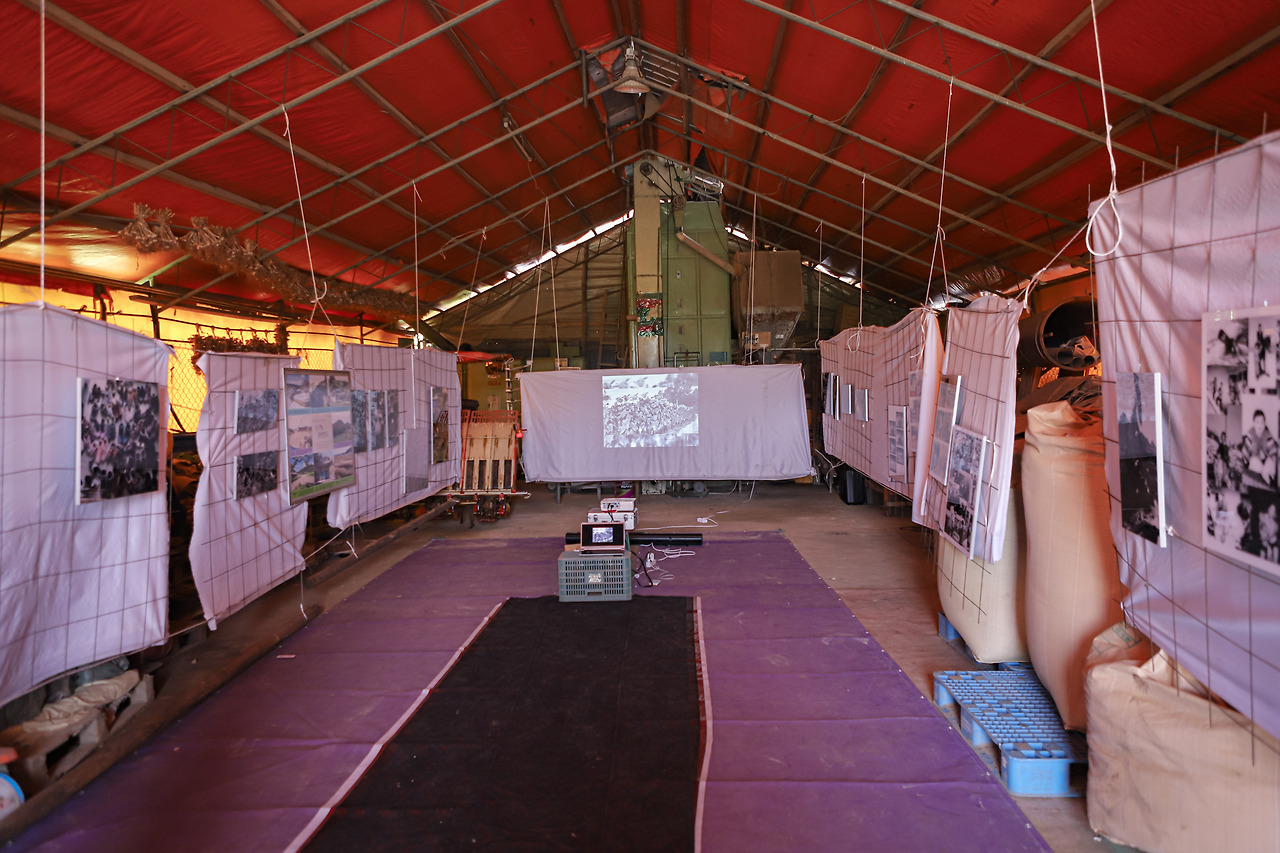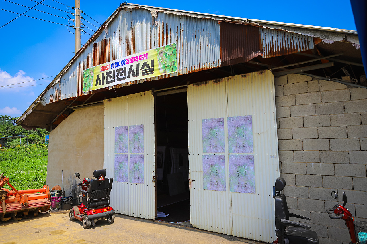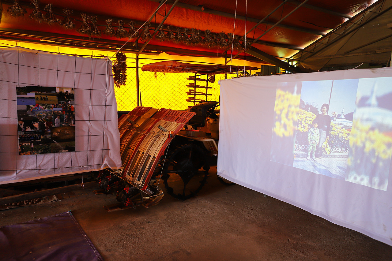 물론 먹는 것만 있는 건 아닙니다. 농기계를 보관하는 창고에서는 동네 사진전이 열립니다. 마을 주민들의 사진이 프로젝터에서 돌아가고, 또 여러 사진작가들이 찍은 마을 사진도 함께 전시됩니다. 지금은 이 창고에서 영화를 상영하기 위한 준비도 하고 있다죠.