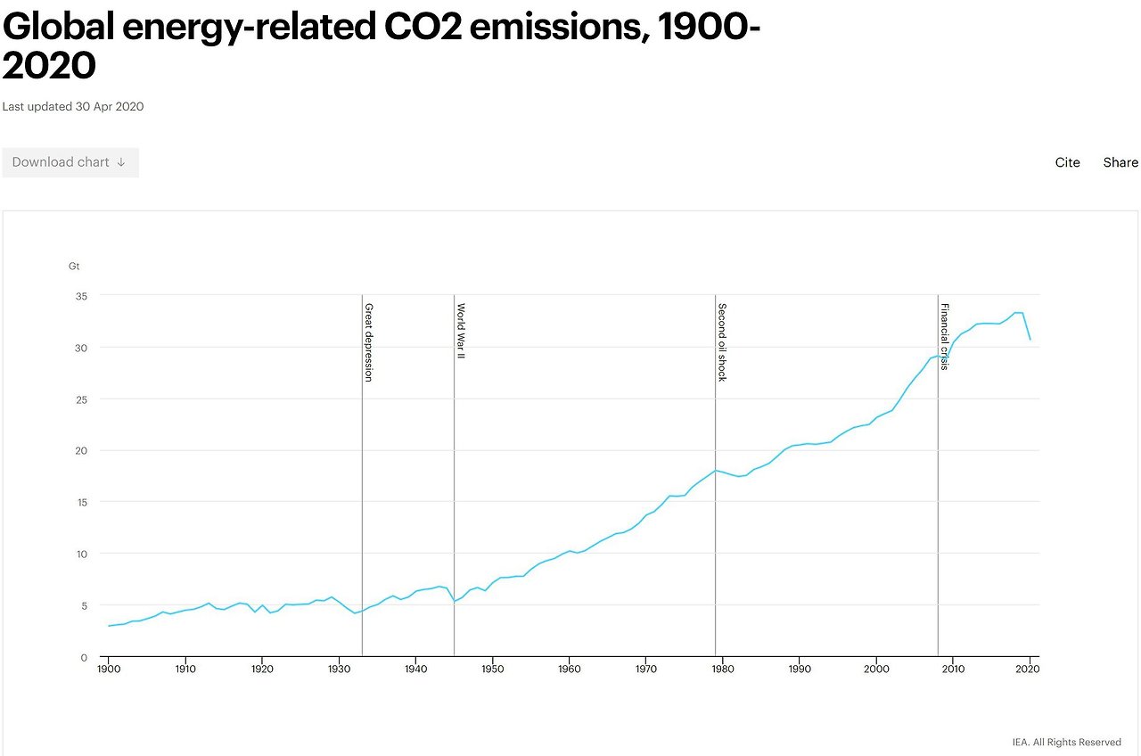 <그림 7>의 인용 : Global energy-related CO2 emissions, 1900-2020