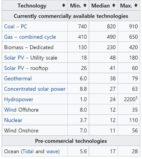 <그림 5>의 인용 : Life-cycle greenhouse gas emissions of energy sources