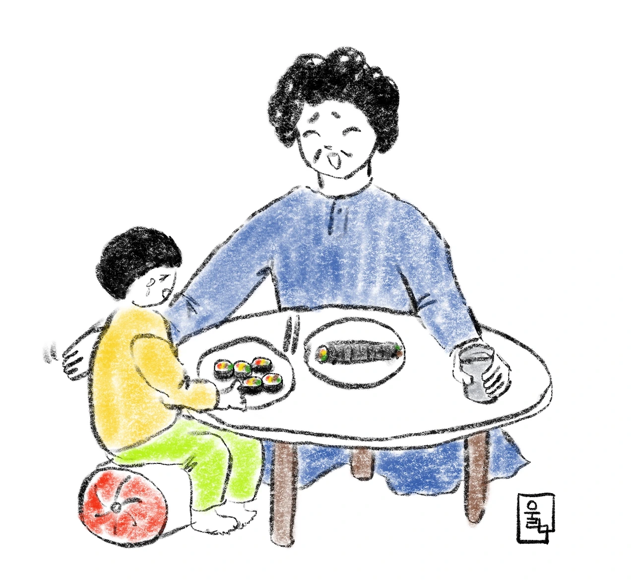 김밥 한 입 먹고 우는 나를 보며
