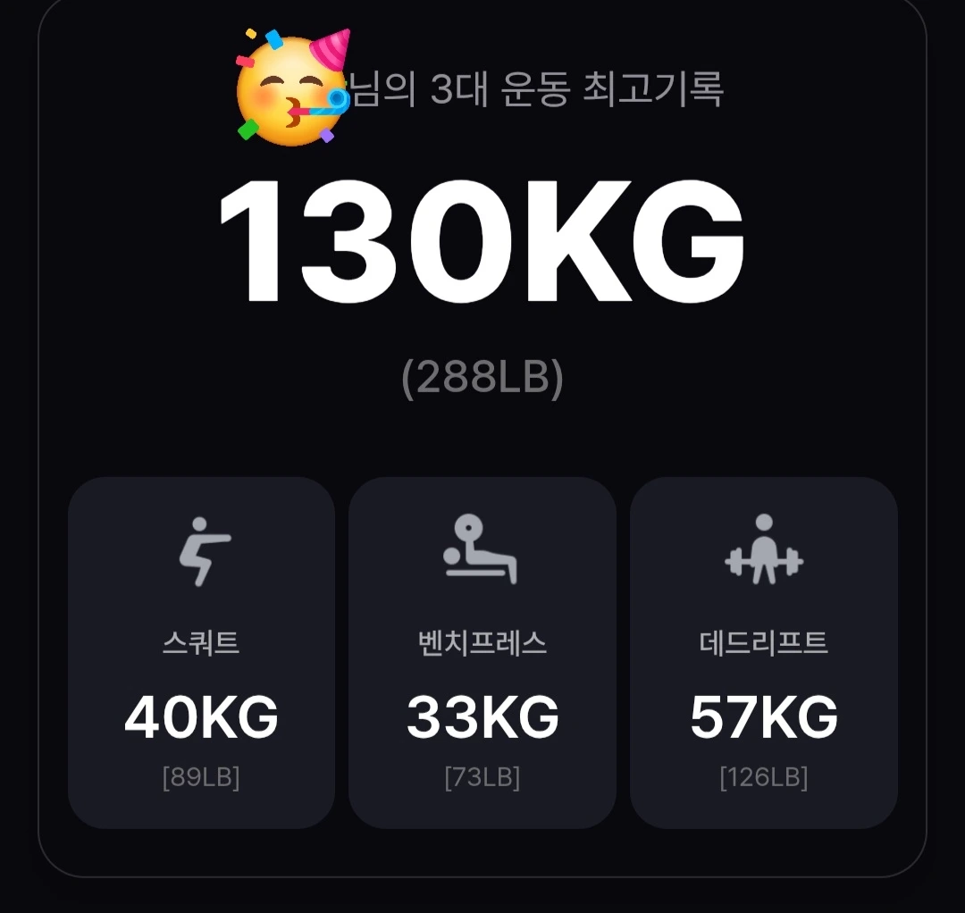 현재 스코어는 스쿼트가 40, 벤치프레스가 33, 데드리프트가 57로 3대 130이다. 하체의 힘을 생각하면 스쿼트에서 최소 10, 데드리프트에서 최소 8은 더 올릴 수 있을 듯한데, 이런 목표가 있으니까 확실히 한 세트를 더 하더라도 무게를 조금이라도 더 늘려보게 된다. 역시 사람은 생각하는 대로 살게 된다.