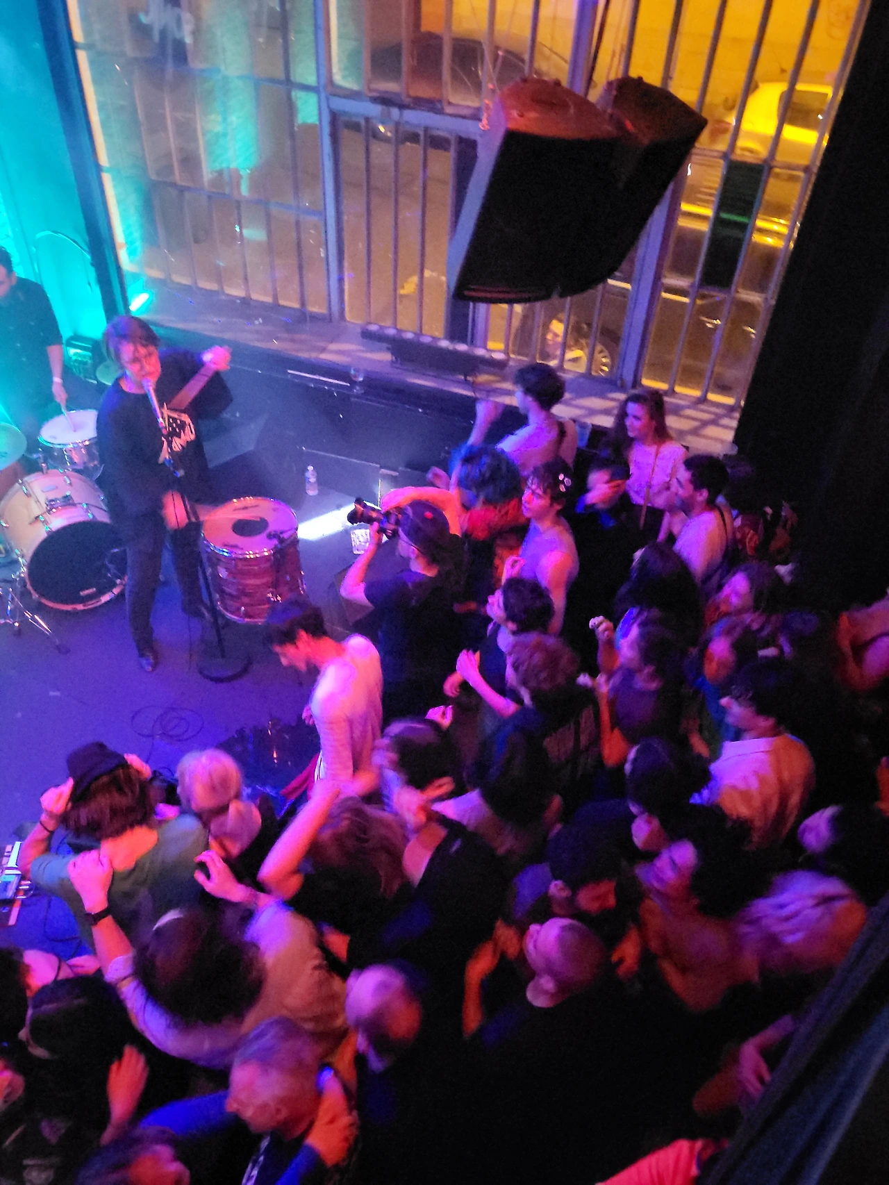 남녀노소를 가리지 않고 록 페스티벌처럼 슬램을 즐기는 사람들, 속옷만 걸치고 있는 혹은 옷을 완전히 벗어젖힌 사람들, 흥을 주체하지 못해 콘서트 하는 가수마냥 사람들 손 위에 드러누운 사람들. 콧구멍에 마약 가루를 집어넣다가 눈이 마주친 꼬마, 진한 키스를 나눈 뒤 각자 갈길 찾아 흩어진 남녀 한쌍, 취객 사이에서 몸을 가누지 못할 정도로 이리 치이고 저리 치이면서도 무대에 오른 밴드를 찍어야 해서 자리를 지키려고 안간힘을 쓰는 사진기사.