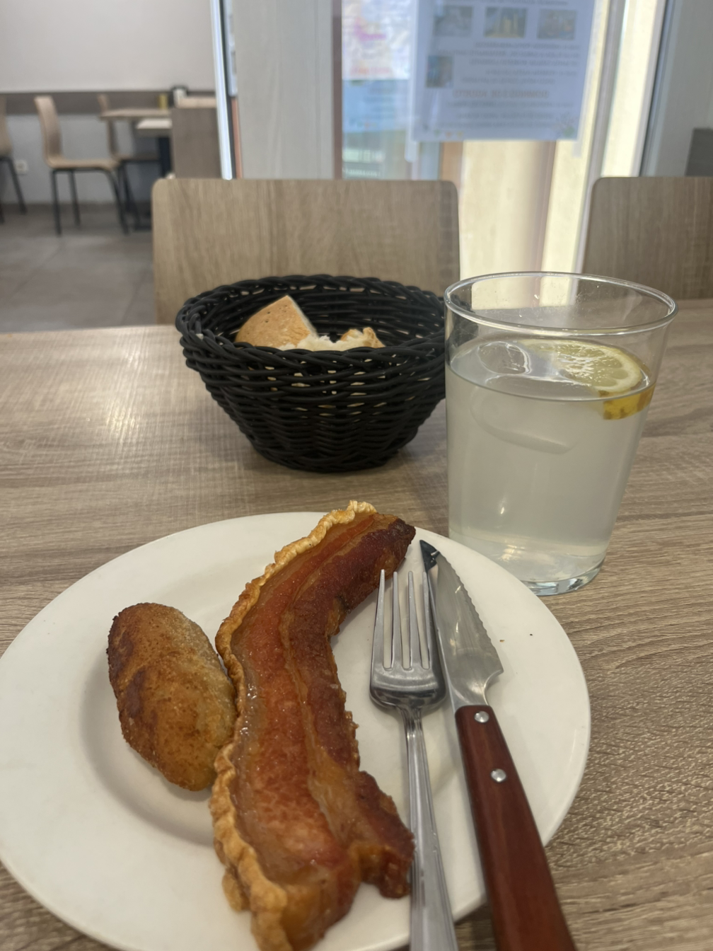 그날은 벨로라도에서 아침 8시가 넘어 출발했는데도 거리가 얼마 되지 않아 12시에 도착했다. 카페에 들러 여유를 부리면서 온 건데도 말이다. 예약한 알베르게는 1시부터 체크인이었고 혹시 하는 마음에 출입문을 두드려봤지만 답이 없었다. 하는 수 없이 숙소 바로 옆에 있는 바에 가서 타파스 한 접시와 이온 음료를 주문했다.