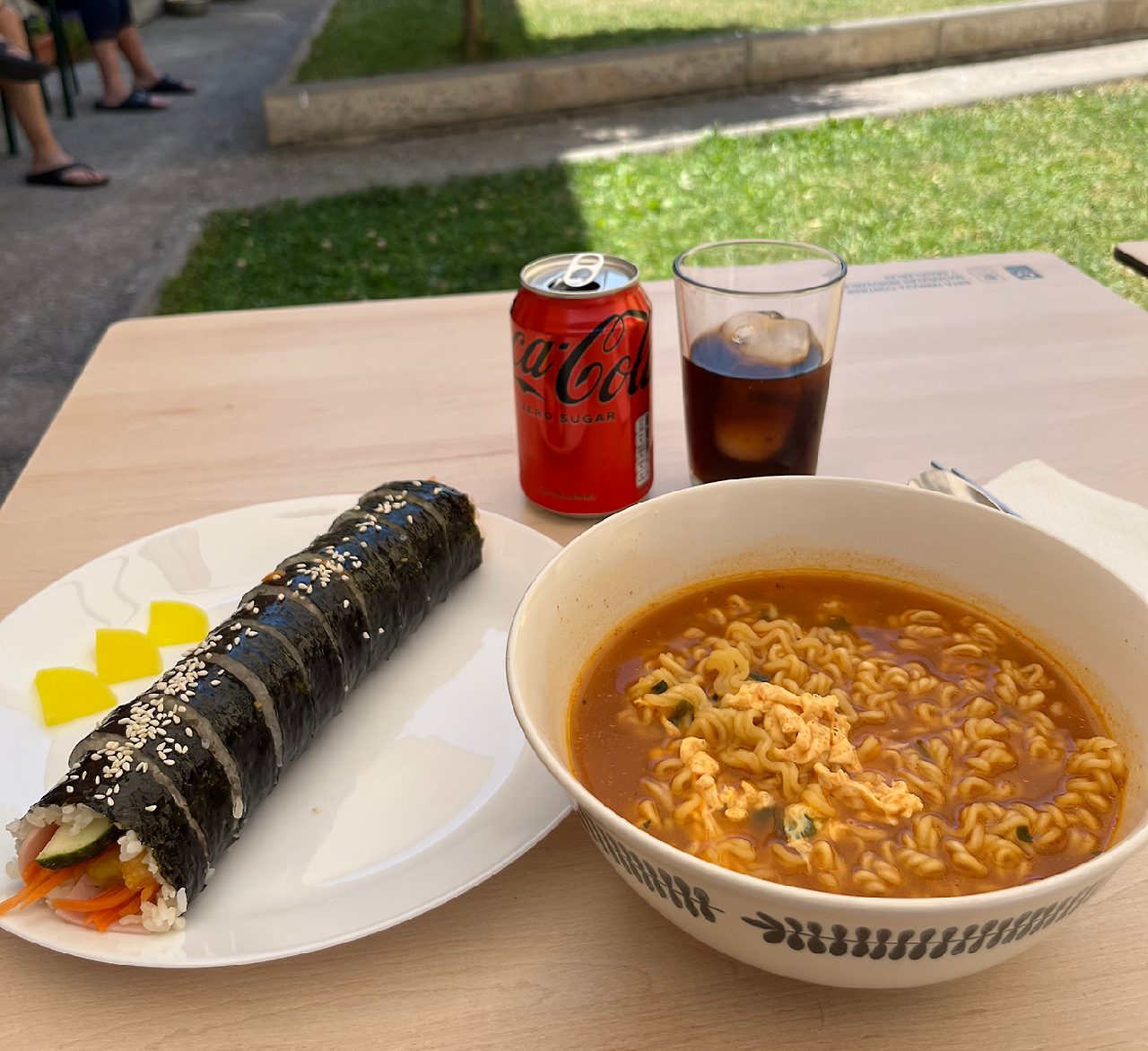 나는 몇 년 전까지만 해도 ‘여행을 가서 굳이 한식을?’이라고 생각하는 쪽이었다. 일상과 다른 것을 경험하고 싶어 큰돈 들여 그 멀리까지 갔는데 일부러 한식을 찾아 먹는 건 유난이라고 생각했다. 심지어 대학생 때 1년간 유럽에 살 때에도 단 한 번도 국물 요리를 해 먹은 적도 없을뿐더러 외할머니가 농사지은 고추를 꼽게 빻은 고춧가루를 국제 택배로 받아놓고도 밀봉 상태 그대로 두었다가 귀국 직전 다른 한국인에게 주고 왔다(그는 닭볶음탕과 떡볶이, 라면을 해 먹을 때 그 고춧가루를 아주 잘 썼다며 당시 페이스북으로 내게 고마움을 표하기도 했다). 그런데 내가 그 ‘유난스러움‘의 당사자가 될 줄이야. 나는 이미 진작에 순례길에서 거치는 마을 중 한식을 먹을 수 곳을 몇 군데 파악해 두었고, 구글맵 검색을 통해 일부 아시안 레스토랑에서도 한식을 맛볼 수 있었다. 또 어느 마을에선 케밥으로 대충 끼니를 해결하려다가 ‘라면, 밥, 김치’라고 적힌 입간판을 발견해 그날은 라면도 아니고 무려 짜파게티를 먹기도 했다. 한국에선 라면도 잘 안 먹었는데 그곳에선 어찌나 맛있던지. 게다가 나는 직접 끓여 먹는 건 귀찮아서 라면 메뉴가 있는 식당에서 사 먹기만 했는데, 그러면 가격이 우리나라 돈으로 1만 원이 훌쩍 넘는다. 그래도 그 돈이 아깝지 않을 만큼 꿀맛이었다. 내가 충만한 행복감을 느낀 한 상을 맛본 곳은 아래와 같다: