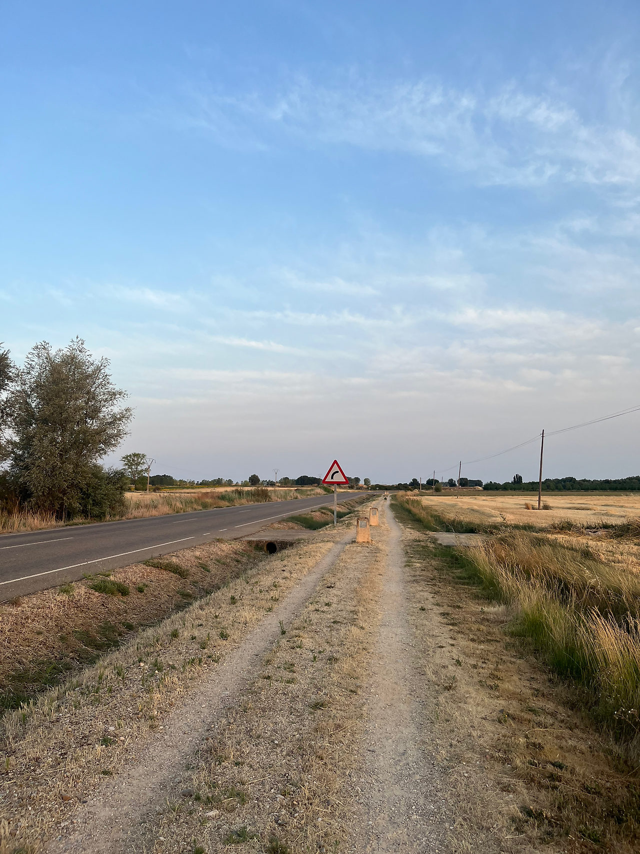 사실 나는 메세타 평원 구간에 들어선 지 이틀째 정도까지도 내가 그 악명 높은 구간을 걷는지 알지 못했다. 첫 이틀 정도는 내가 감탄했던 비현실적일 만큼 드넓은 황금빛 밀밭을 감상할 수 있었고, 마을과 마을 사이 거리가 좀 있을뿐 이미 지나온 길과 특별히 다르다고 생각하지 못했기 때문이다. 앞으로 이어질 메세타 평원 구간이 아주 지루하다더라는 순례자들의 염려를 들은 후에야 나는 내가 메세타 평원 구간에 들어섰음을, 그리고 지난 이틀이 평탄했으니 왠지 나는 앞으로도 별 불평 없이 걸을 수 있을 거라는 ’근자감‘까지 갖게 됐다. 게다가 ’평원‘이라니, 산과 언덕을 타며 호흡이 달리는 것보단 평지를 걷는 게 훨씬 수월할 텐데, 난 햇볕 받는 것도 좋아하니까 오히려 나한텐 개꿀일 수도 있잖아!