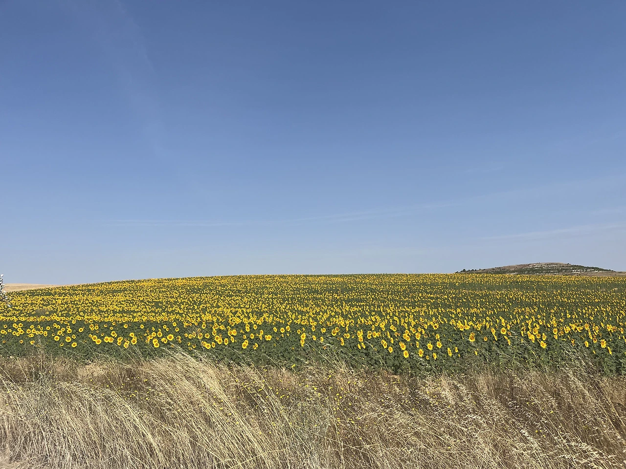 메세타 평원에 대한 포털사이트의 AI 설명은 이렇다. 하늘과 맞닿은 듯한 평원과 탁 트인 시야, 바람에 일렁이는 밀밭이 인상적인 풍경을 선사한다. 맞는 말이다. 나는 메세타 평원 구간 이전에 드넓게 펼쳐진 황금빛 밀밭을 마주한 날, 처음으로 ‘걷길 잘 했다’고 생각하기도 했다. 메세타 평원엔 이 멋진 풍경이 끝없이 펼쳐질진대, 왜 수련을 방불케 하는, 견뎌야 하는 길로 알려진 걸까.