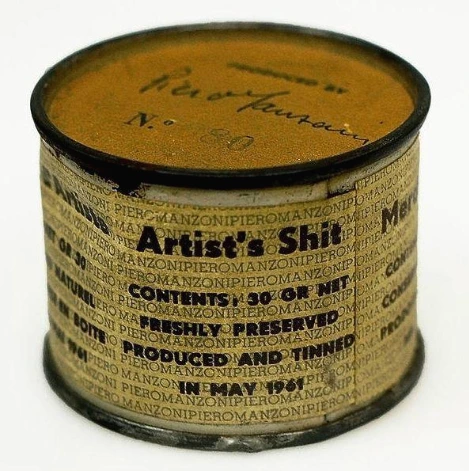 피에르 만조니는 자신의 똥을 작은 캔에 담아 봉한 후 그 위에 서명을 하고 '예술가의 똥, 정량 30g, 원 상태로 보존, 1961년 5월 생산'이라는 메모를 캔 옆면에 남겼다. 그는 똥을 90개의 캔에 소분하여 담았는데, 당시 금 30g의 값인 37달러를 캔 하나의 값으로 책정했다. 이 캔 중 하나는 지난 2008년 한화로 약 2억 3천만 원에 거래됐다.
