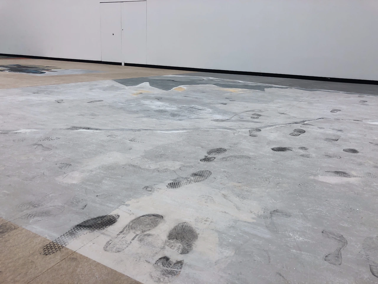 벽에 걸린 그림은 단 한 장도 없었고, 설치된 어떤 작품도 없었다. 오직 그 큰 공간은 바닥만 활용되고 있었다. 이 전시를 감상하려면 관람객은 바닥만 보고 다녀야 했다. 게다가 대부분의 미술관에서 볼 수 있는 작품 옆 설명 글귀도 없는 이런 불친절한 전시라니. 관람객은 내내 고개를 숙이고 예의 차리며(?) 다녀야 하는데, 예술가는 너무 뻔뻔한 것 아닌가! ...라는 생각은 당시엔 하지 못했고, 오직 8유로의 본전을 뽑기 위해 땅바닥을 열심히 살펴보기로 했다.