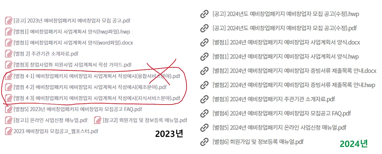첫 번째, 모집 공고 게시글에 “사업계획서 작성예시”파일이 없습니다.