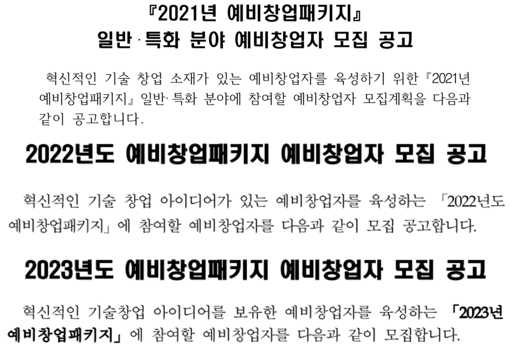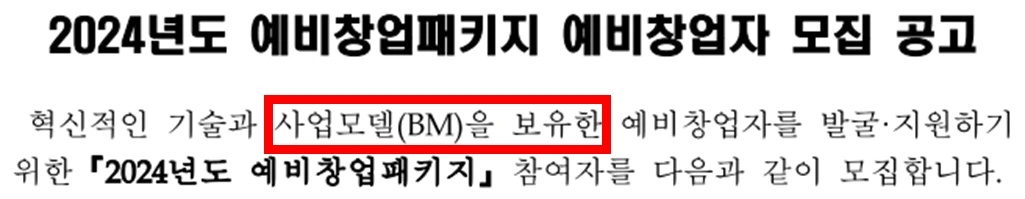 네 바로 말씀드리면 모집 공고에 “사업모델(BM)을 보유한”이라는 말이 추가되었습니다. 이전까지의 공고문을 보겠습니다.