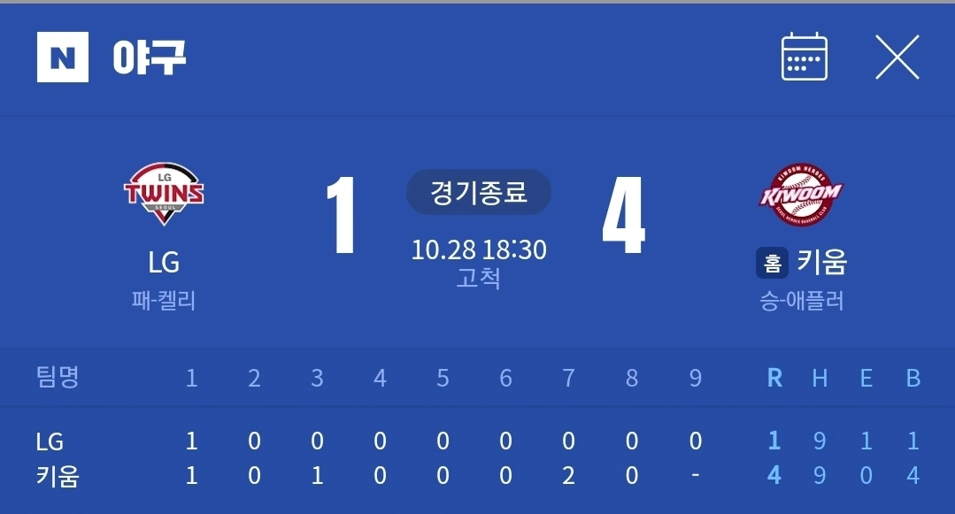 10월 28일에 있었던 KBO 플레이오프 4차전에서 키움 히어로즈가 LG 트윈스를 1:4로 제압하여 정규리그 3위 팀이 2위 팀을 꺾고 한국시리즈에 진출하는 업셋이 일어났습니다. 2019년부터 4년째입니다. 정규시즌 역대급 2위로 불렸던 강한 전력의 LG였으나 키움은 전문가들의 예상을 다 깨부수고 한국시리즈에 제 발로 진출하는 데 성공했습니다.