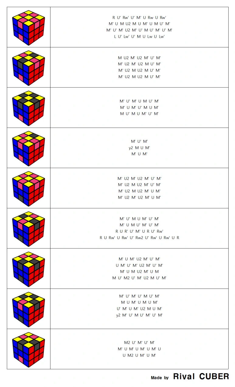 3x3x3 큐브의 특성상 오리엔테이션은 홀수개가 틀릴 수 없습니다. 그림에 홀수개만 표시된 경우 보이지 않는 뒤쪽 아래의 엣지의 오리엔테이션이 틀렸음을 고려하셔야 합니다.