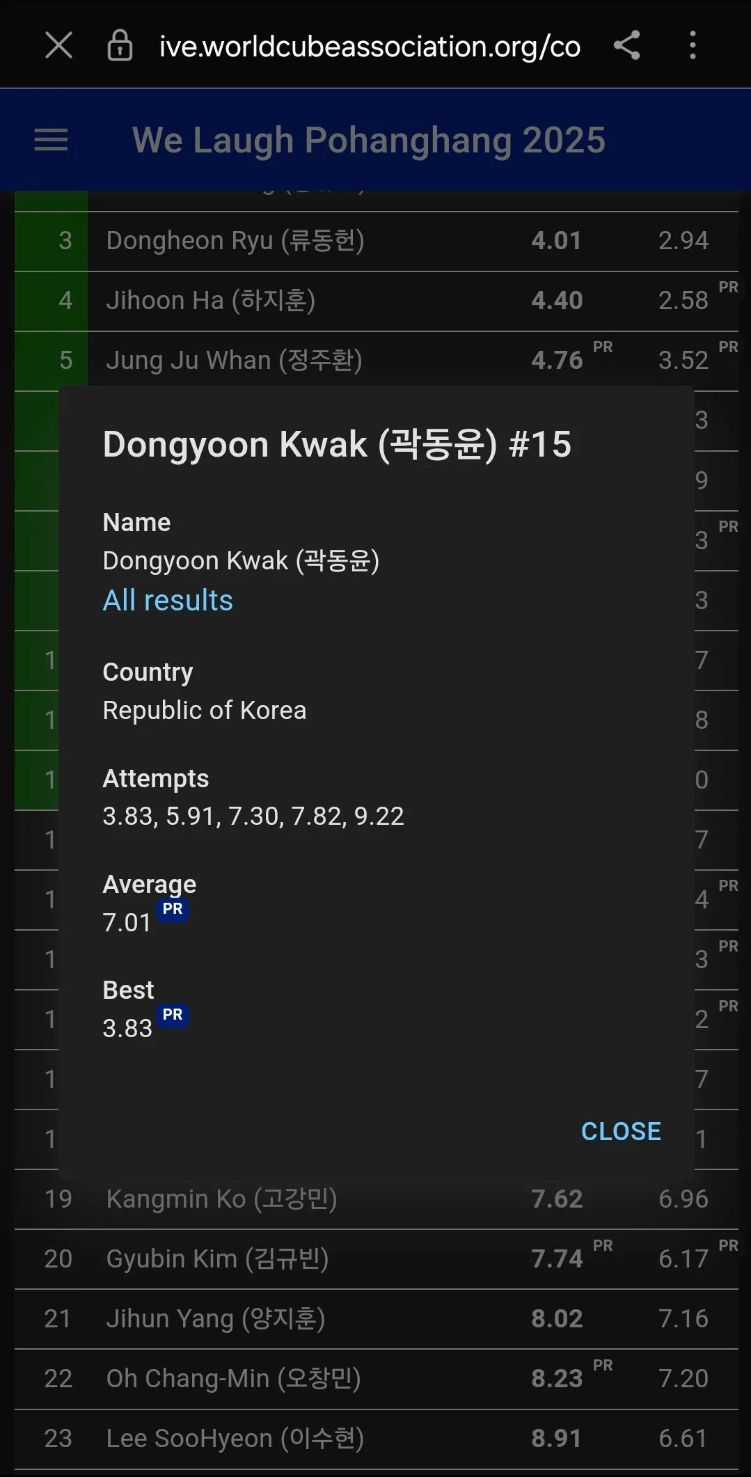 오후에는 메밍을 쟀습니다. 이건 기록 보여줄 것도 없고 무난하게 결승 갔어요.