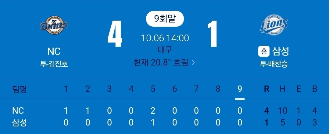이제 삼성은 준플레이오프를 준비해야 합니다. 쉽지 않은 경기가 될 것으로 예측됩니다. 1,2선발을 와일드카드에 다 쏟아부었고 준플레이오프에서는 대체선발 수준의 선수들로 SSG의 1,2선발을 상대해야 합니다. 타선의 활약이 절실하네요. 준플레이오프가 끝나고 다시 야구 이야기로 찾아오겠습니다.