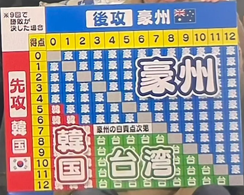 일본인으로 추정되는 한 관중이 만들어 온 경기 결과에 따른 2라운드 진출국을 정리한 표입니다. 한국의 영역이 가장 좁았지만 결국 올라간 건 한국이었죠.