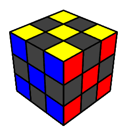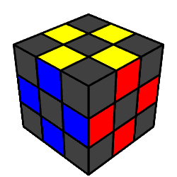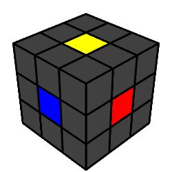 코너조각입니다. 3x3x3 큐브에는 8개가 있습니다. 각 면의 꼭짓점에 대응됩니다. 코너조각의 색배치는 바뀌지 않습니다.