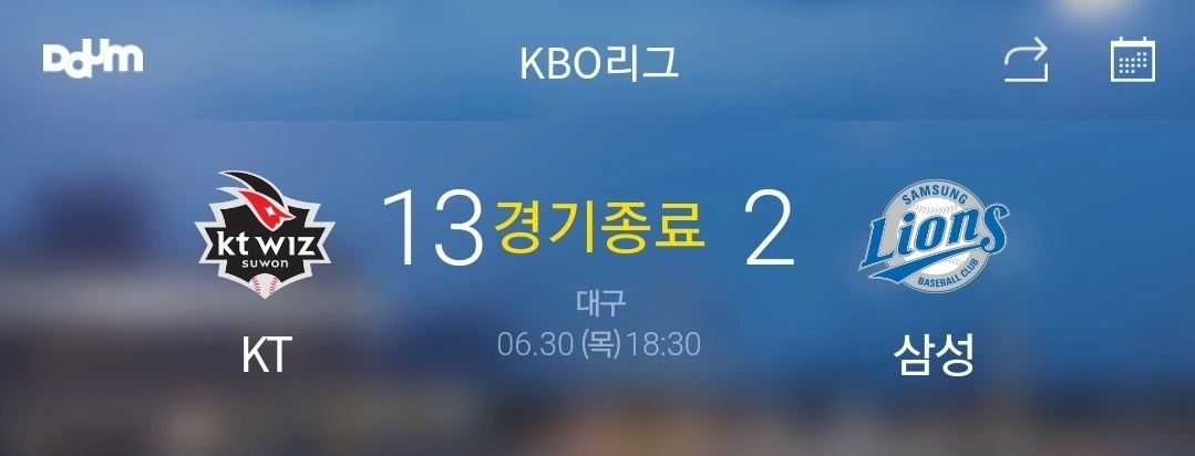 오늘 삼성의 타선은 kt의 투수진을 제대로 공략하지 못했고 투수진은 kt의 타선을 전혀 막아내지 못하며 11점 차로 대패했습니다. 중위권 싸움에도 빨간 불이 켜졌죠. 오늘이 지나면 7월이네요. 7월에는 어떤 일이 일어날까요. 삼성은 포스트시즌에 진출할 수 있을까요? 올해도 지켜보려고 합니다.