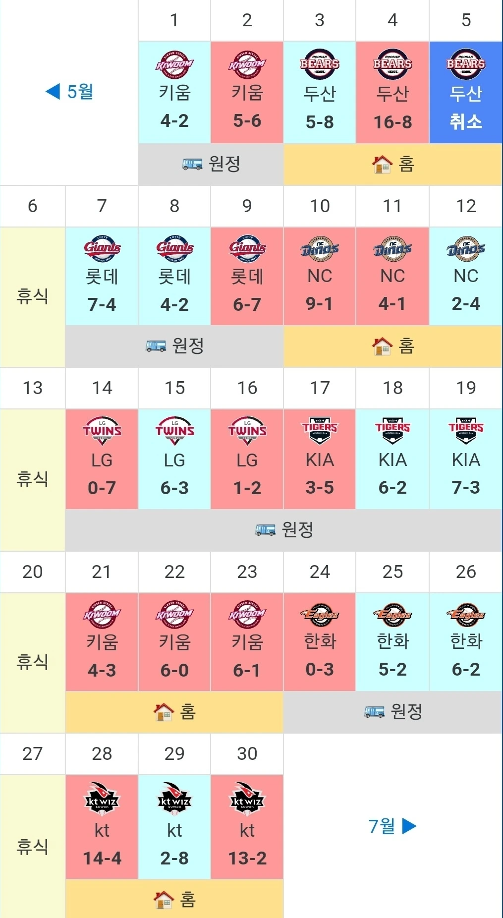 여담으로 특이한 기록인데 이번 6월 삼성 라이온즈는 목요일 전패, 일요일 무패입니다. 그나마 한 주의 마지막은 기분 좋게 마무리할 수 있었네요. 7월, 그리고 올스타 이후에는 꼭 좋은 모습 보여줬으면 좋겠습니다.여름성의 위엄을 다시 한번 보여줄 수 있으면 좋겠습니다.