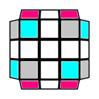 코너 조각의 경우는 각 조각의 분홍색으로 표시된 면이 위 그림에서 분홍색을 보고 있으면 1, 회색을 보고 있으면 ω, 하늘색을 보고 있으면 ω²의 값을 가진다고 정의합니다(ω³=1, ω≠1). 그림을 보면 U, D, R2, L2, F2, B2 회전은 코너 조각의 방향성을 항상 맞게 유지시킨다는 것을 알 수 있습니다. 그러나 R, L, F, B 회전은 그렇지 않습니다.