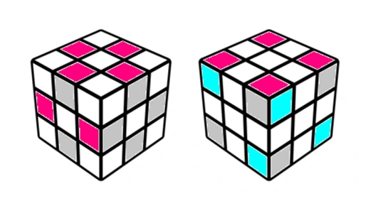 3x3x3 큐브가 가질 수 있는 경우의 수는 약 4325경 정도입니다. 그러나 이 많은 상황에 포함되지 않는 어떤 해법을 사용해도, 어떤 공식을 사용해도 도달하지 못하는 불가능한 상태가 무려 4325경의 11배만큼 존재합니다. 그 예로는 크게 아래의 네 가지 경우를 들 수 있습니다.