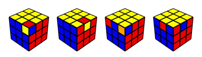 큐브에서 나올 수 있는 모든 퍼뮤테이션은 조각의 교환으로 나타낼 수 있습니다.
