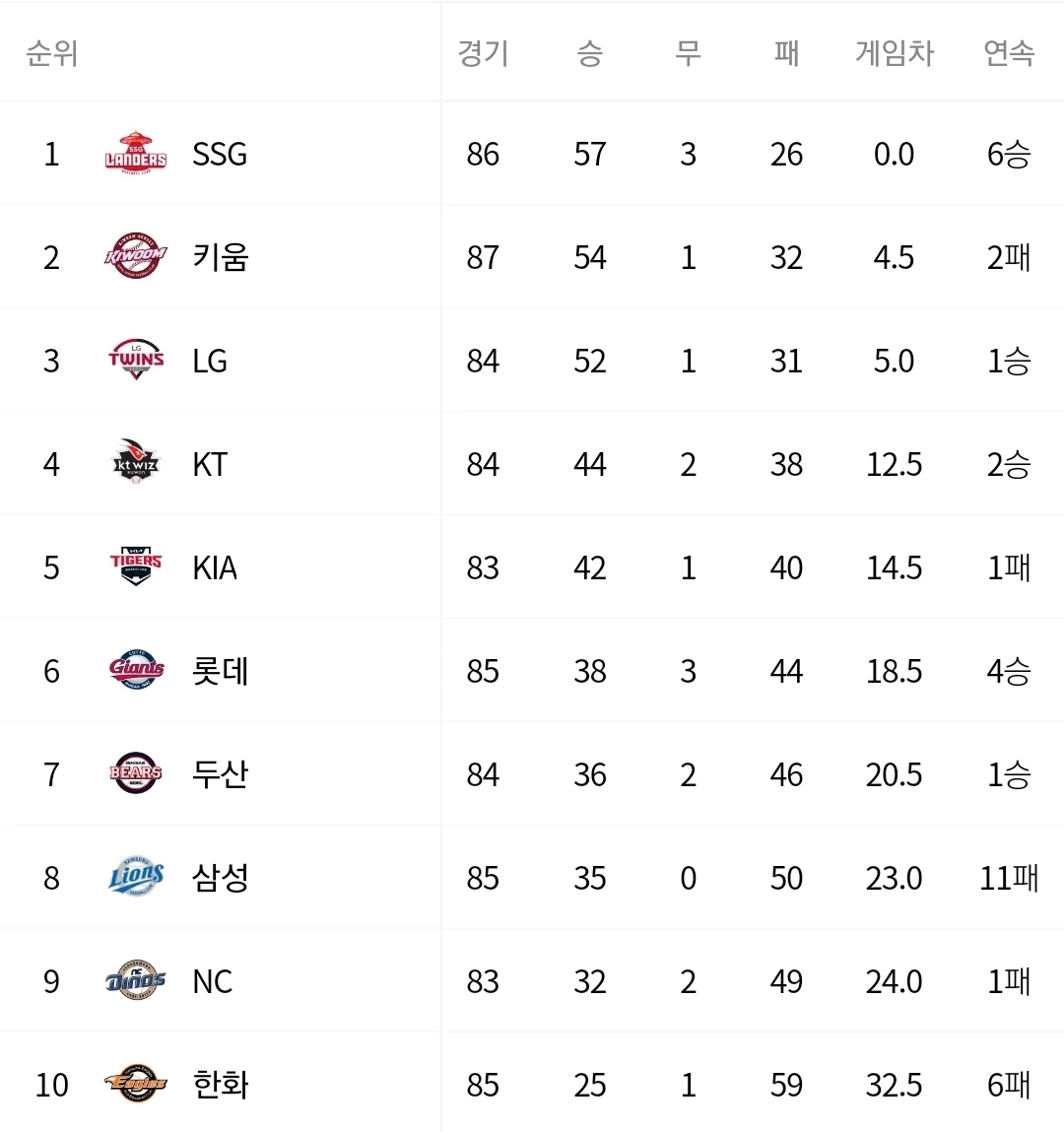 그나마 6월 말까지는 롯데, 두산이 동반 부진하고 NC는 여전히 시즌 초반의 승률이 발목을 잡아서 5할에서 멀어져 가는데도 불구하고 6위에서 버티며 5강 진출의 희망을 가질 수 있었습니다. 그러나 7월 전반기에 전패 및 구단 역사상 최다 연패를 기록하며 희망의 불씨는 완전히 꺼지고 오히려 9위 추락을 걱정해야 할 수준이 되었습니다.