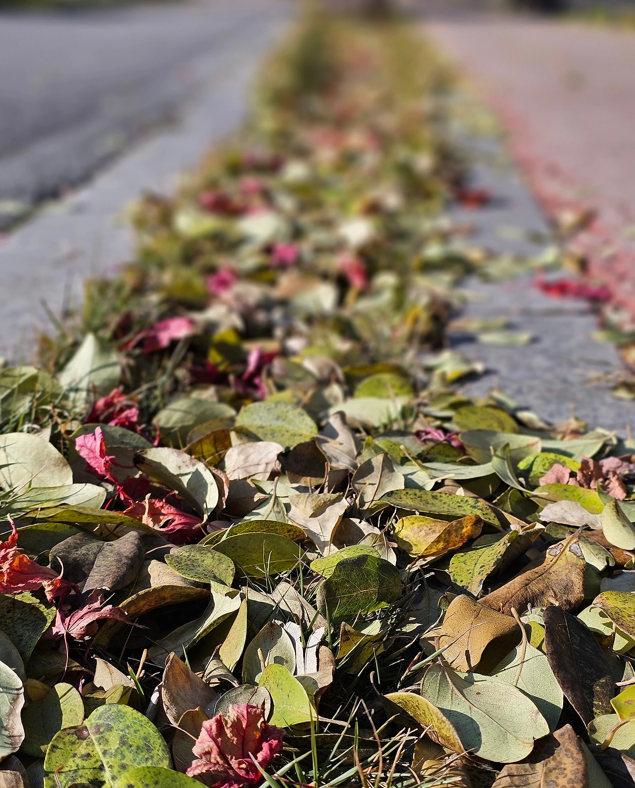 메마른 나뭇잎들이 작은 회오리바람을 따라 지면을 쓸며 서로 엉켜 휘돌아간다