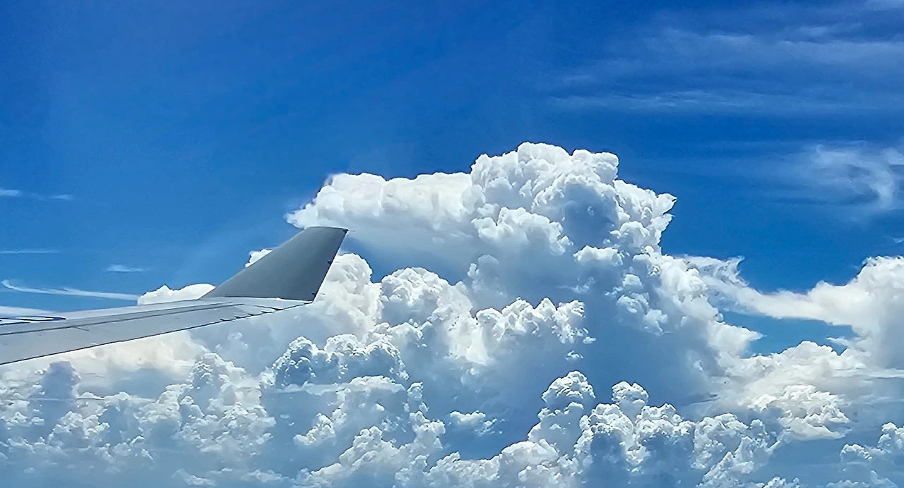 파란 하늘 높이 풍선을 달고