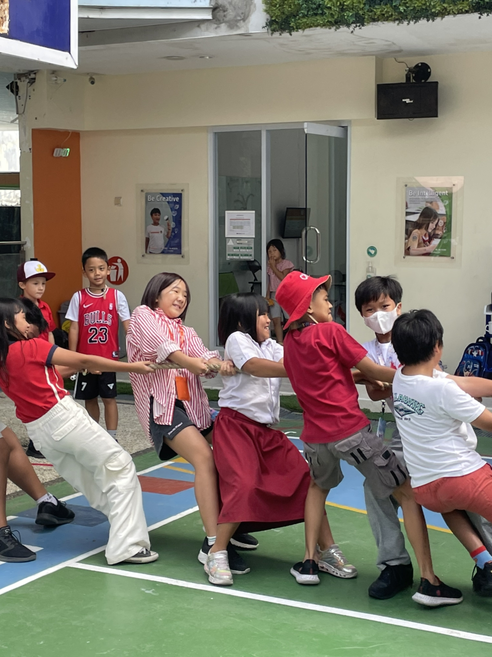 6학년과 4학년의 줄다리기 시합은 당연히 6학년이 승리다. 체격차이부터가 다른데 당연히 지는 게임을 왜 하는지 모르겠지만 다들 즐거워 보인다. 어수선한 분위기가 이해가 안 되지만 어쨌든 진행을 되어가는 거 같다. 너무 자유롭고 자유로워 적응은 안 된다. 체계라는 게 없어 보이는데 행사가 흘러간다.