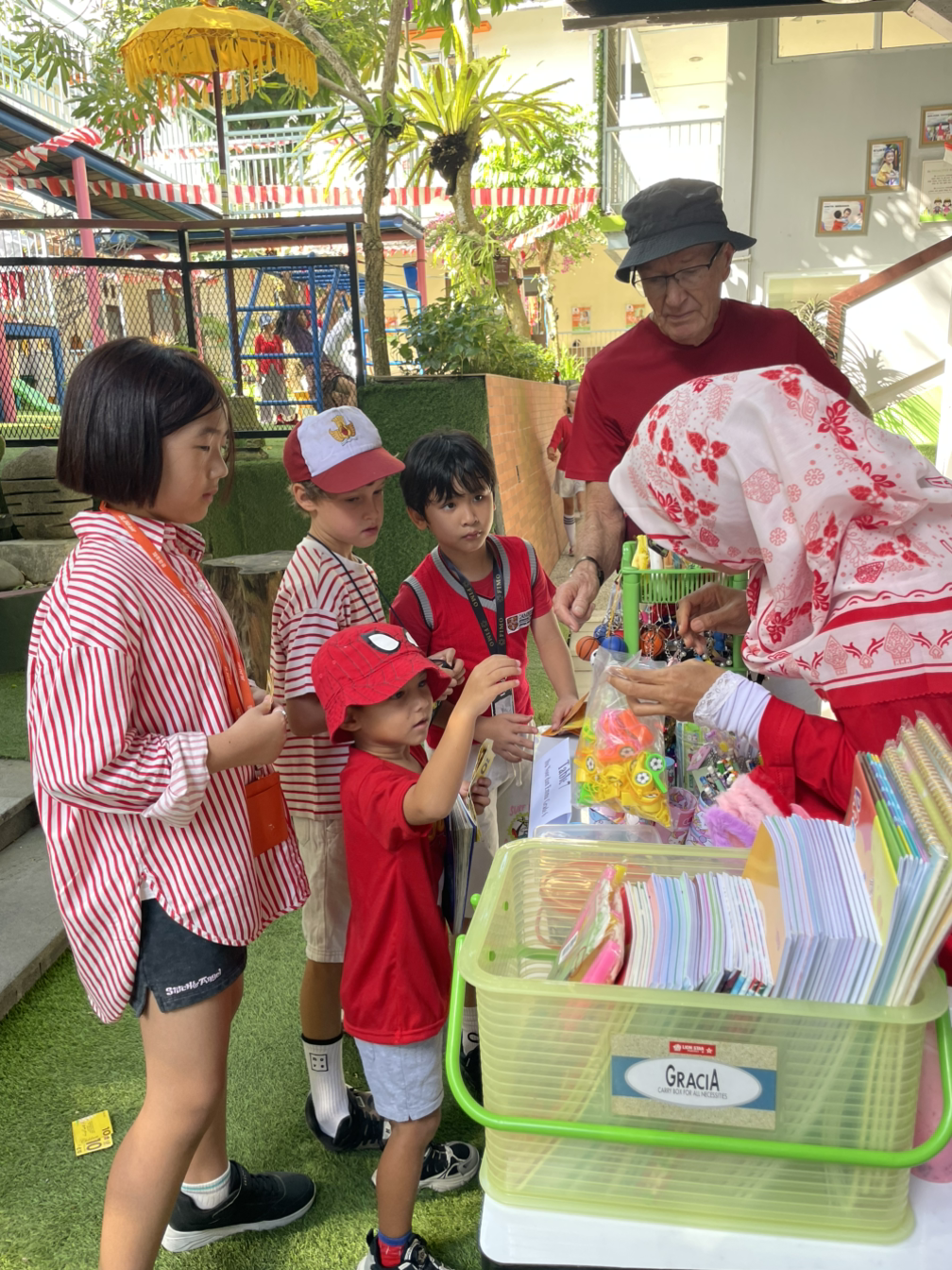 학교에 도착 후 간식을 먹고 여러 가지 행사가 열렸다. 게임도 하고 물건 판매도 하고 먹거리도 팔았다.