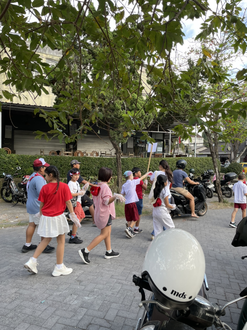 학부모들 초대하는 날이 아니었고 독립기념일 행사날이었는데 공원에서부터 자연스럽게 같이 쓰레기를 주우면서 학교를 걸어갔고 아이들과 함께 돌아다녔다. 인도네시아 독립기념일 학교 행사가 궁금했다.