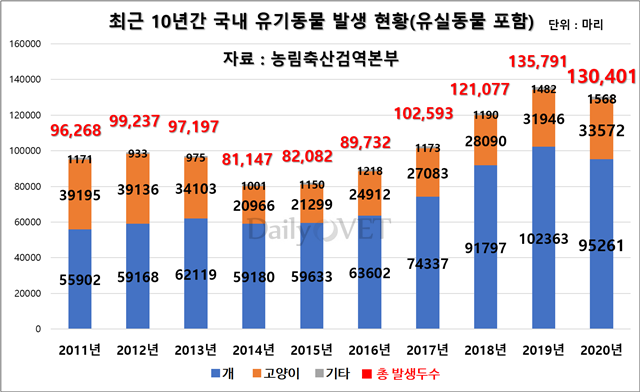 그중에서도 오늘은 유기견과 관련된 이야기를 해볼까 싶다. 유기견은 왜 생기는 것일까? 그들도 한때는 따뜻한 가정 속 보호자의 품에서 애지중지 소중하게 보호받아 왔을 것이다. 그런 그들이 어째서 파양이 되어 유기견이 된 것일까? 실제로 유기견과 관련된 문제는 현재도 끊임없이 논의되고 있다. 농림축산검역 본부의 조사에 따르면 2011년 5만 마리부터 시작된 유기견들이 2019년에 10만 마리로 늘었고 2020년에 9만 마리로 줄었지만 여전히 그 두수는 많을 뿐이다.